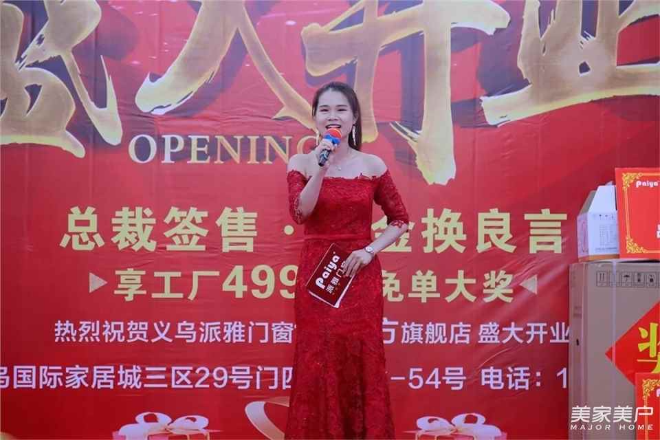 义乌派雅方总在开业现场致辞,对千里奔赴的派雅总部高层领导和派雅经销商家人们前来助力义乌店开业活动,很是开心,无以言表,对高朋满座的业主朋友的到来表示感谢,我在义乌扎根二十多年,始终坚持做好派雅门窗,此次义乌1000方旗舰店的升级扩大,是受到总部新展厅的启发,“要想做好市场,就必须改造升级,迎合时尚潮流”,积极响应总部的号召,紧跟发展步伐!此番到来的经销商家人与消费者对义乌店的装修风格、产品、软装等都纷纷赞不绝口,新店面、新形象,这是派雅门窗终端店面的新时代!