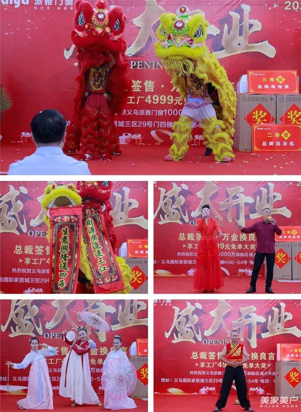 5月30日,派雅门窗又迎来浙江义乌派雅1000方旗舰店盛大开业,现场人声鼎沸,派雅门窗董事长李钧洪先生,营销总经理陈海全先生更是在百忙之中抽出宝贵时间千里飞赴亲自到场,为浙江义乌派雅家人开业站台鼓劲,鼎力支持,总部多名区域经理、主动营销团队全力协助!市场集团董事长王春明先生、林业开发公司总经理何能斌先生、林业开发公司副总经理胡治平先生受邀出席本次盛典,开业现场精彩狮舞、歌舞升平,让这场盛大的开业活动在热闹欢腾的气氛中声动全城,格外引人注目!