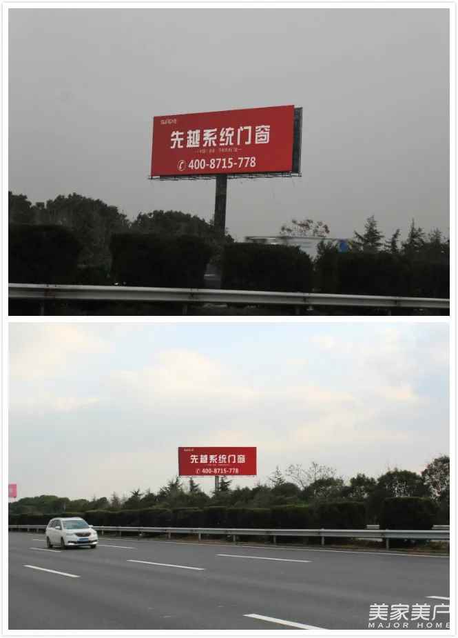随着2020年《经销商战略峰会》的深入推进,先越高炮广告继续上线,本次即将在,作为长江沿江经济带脊梁的“沪宁高速”上,继续上线23个高炮广告,加上前期投入,先越门窗现已基本实现,整个华东地区的全面辐射。