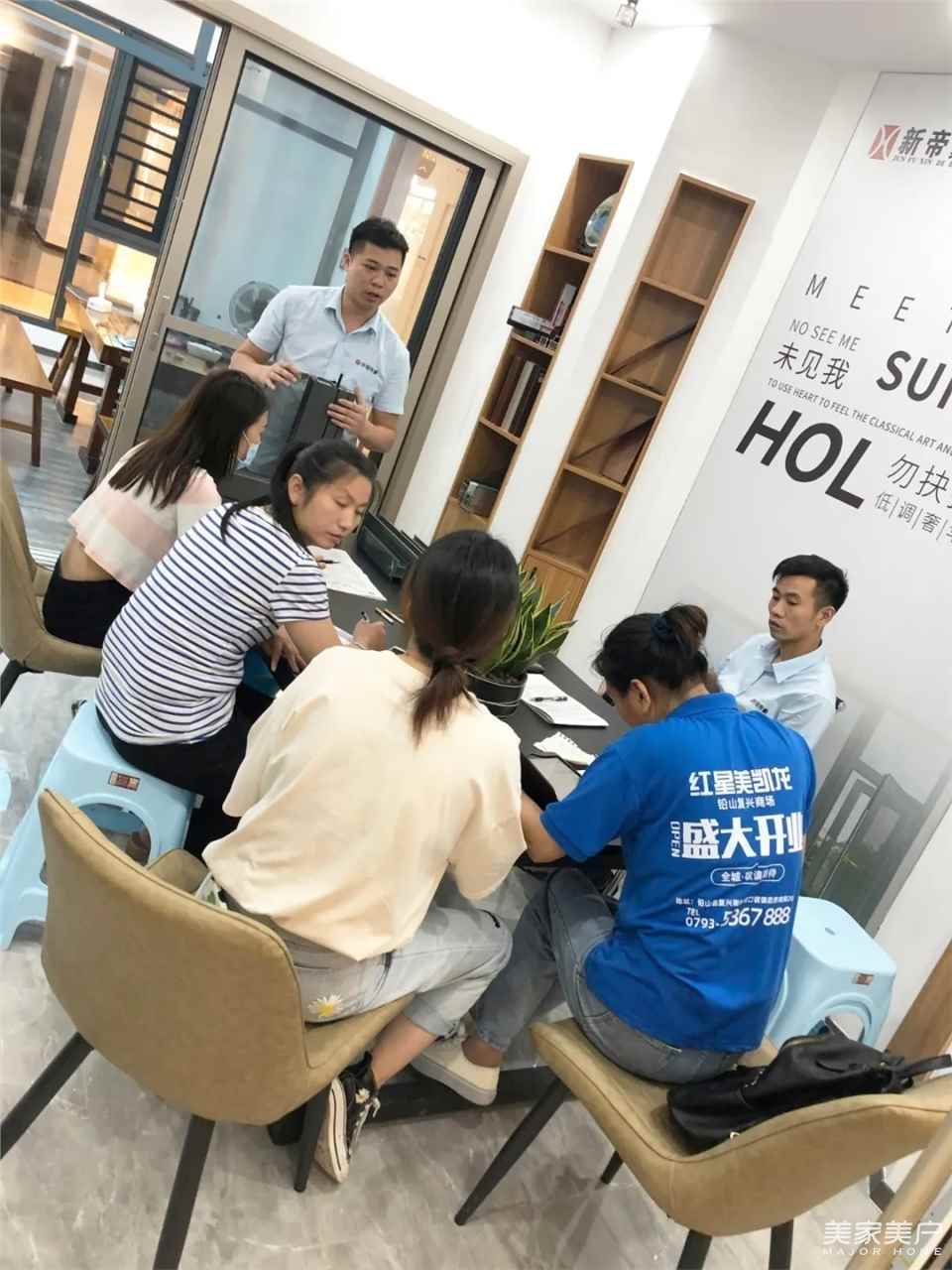 新帝豪帝门窗总部派出战斗力最强的销售精英扛起胜利的旌旗,一行奔赴铅山红星美凯龙店,大力支援本次开业活动。