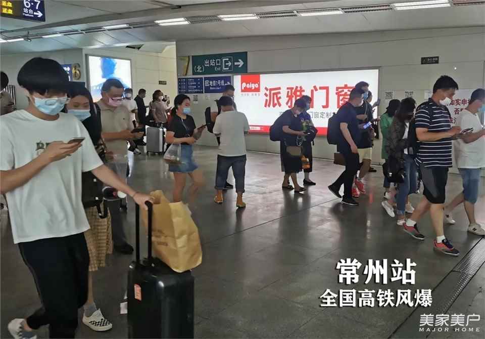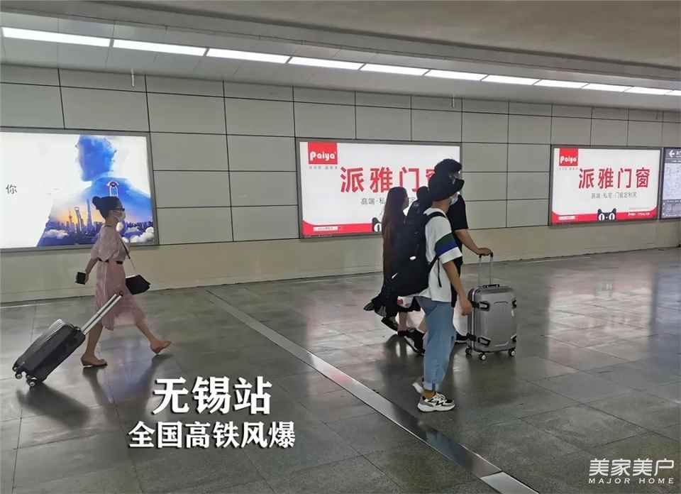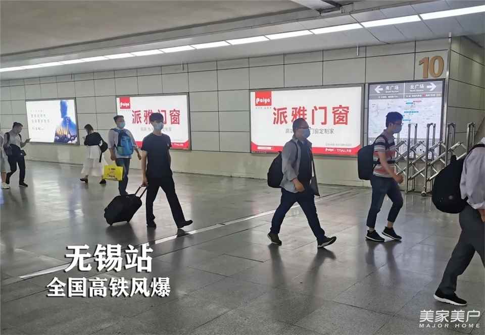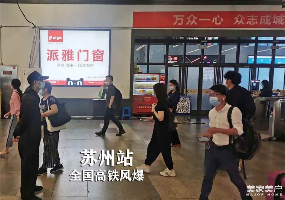 高铁站舒适、高效的整体环境与派雅一直以来强调的“为用户带来更舒适、便捷的生活”相契合。派雅门窗围绕中国最核心的高铁线网,发挥纵贯南北的京沪、京宁高铁的大动脉辐射作用,于苏州站、常州站、无锡站等区域核心城市站点投放第四批高铁广告,预计日均人流量超1000万+。派雅品牌广告大面积霸屏,全天高铁运营全时段进行循环播放,以强烈的视觉冲击效果,向外界震撼发声,全方位、多形式的精准传达派雅品牌价值,大大提高了派雅的品牌知名度,提升了派雅的影响力。派雅大手笔强势布局2020年,“搭乘”中国高铁乘势向上,打响火爆市场的一枪,赋能营销。
