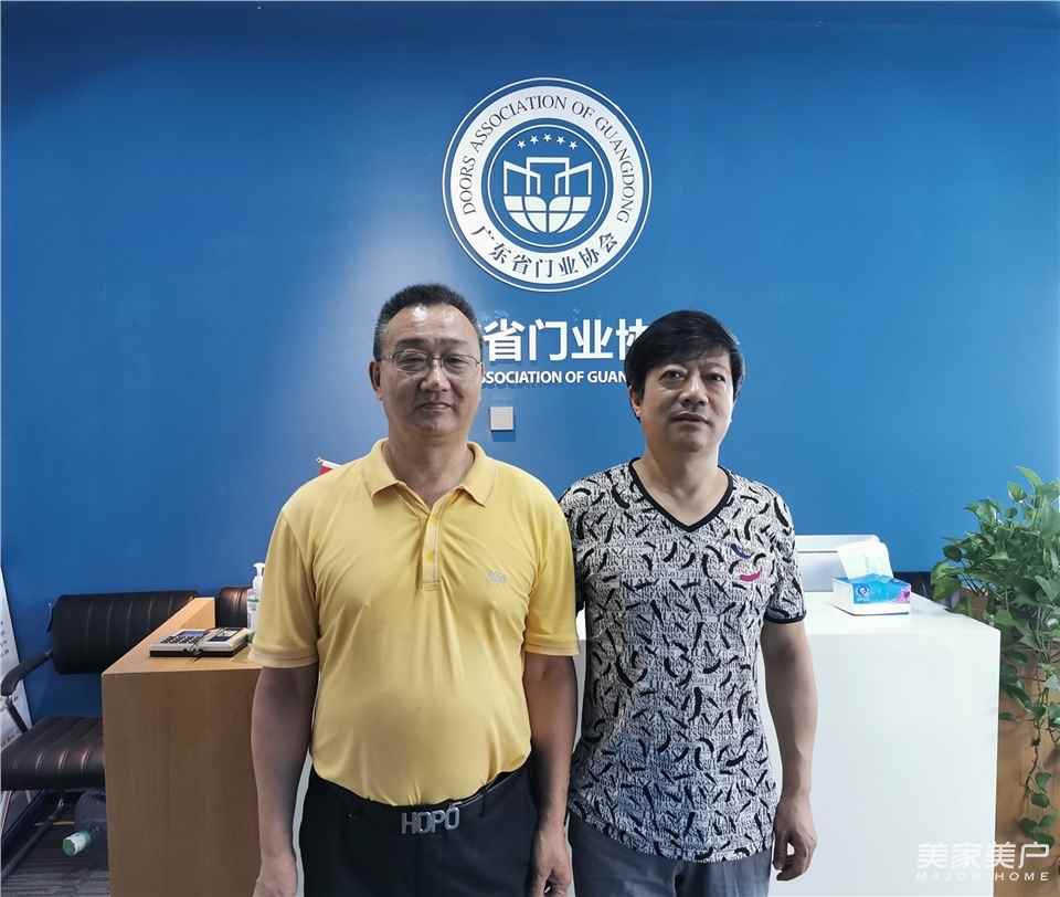 广东省门业协会秘书长徐生(左)与重庆市木门行业协会秘书长梁天顺(右)合影