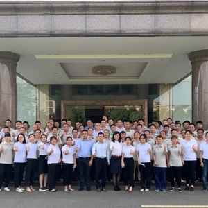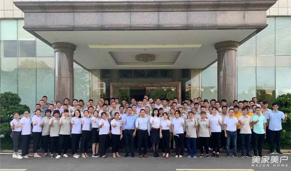 会议结束,全体员工元气满满,来到办公楼前拍大合照。