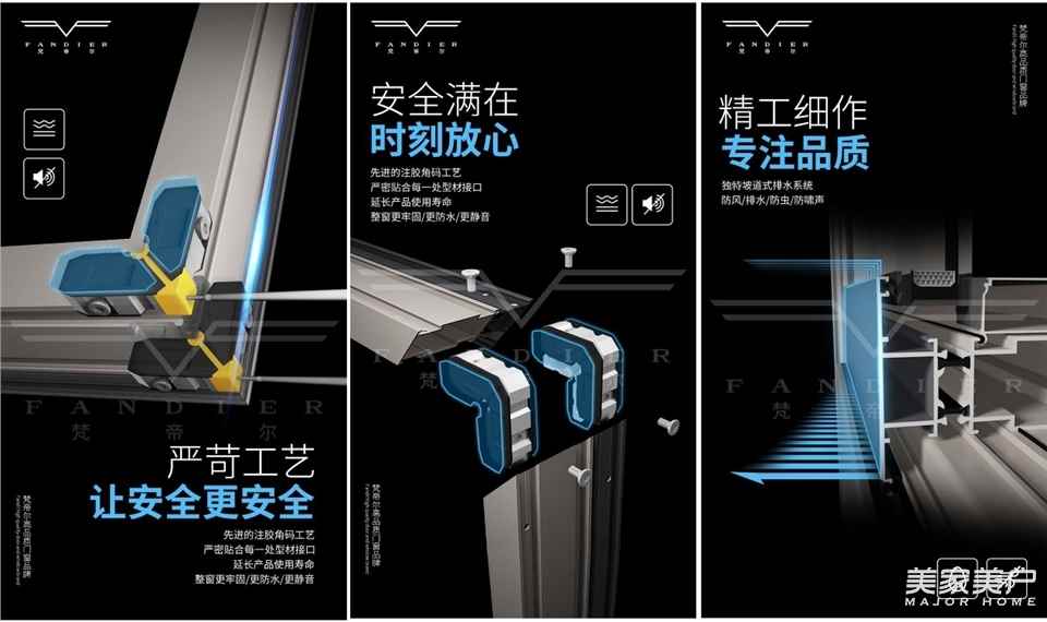 梵帝尔系统窗采用注胶角码、坡道式排水、多道密封等先进技术,五金配件稳固安全,在安全性、防水密封性、隔音隔热性能方面都令人叹为观止。买优质、时尚的门窗产品使用寿命更加长久,体验更加舒适。