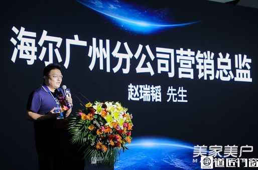 海尔广州分公司营销总监赵瑞韬致词,海尔与“道匠门窗”会携手合作,制作研发最好的产品提供给消费者使用。