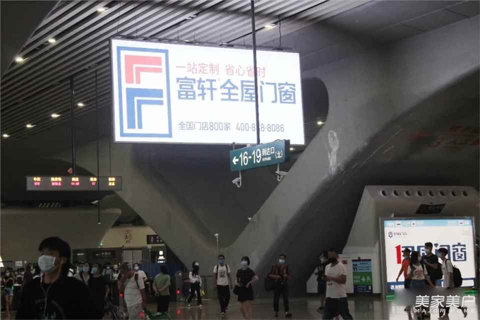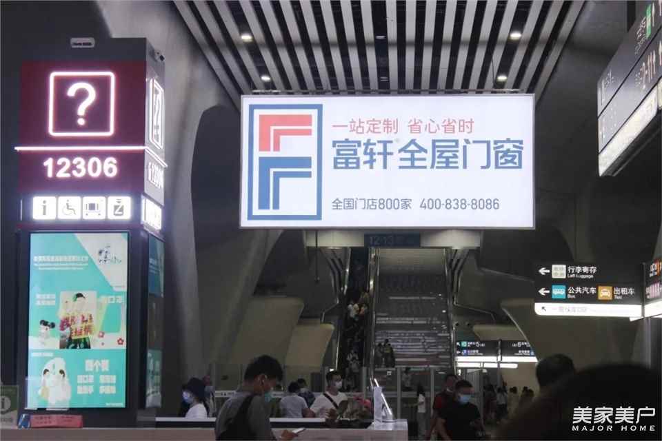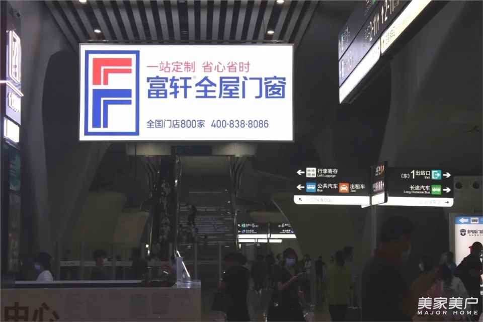 富轩门窗这次投放广告在多个客流量巨大的高铁站,尤其是广州南站,多方位多角度,目标清晰,位置显眼,让富轩门窗得到了非常高的曝光率,强势高效地宣传富轩门窗升级为全屋门窗的新形象,一站定制,省时省心。