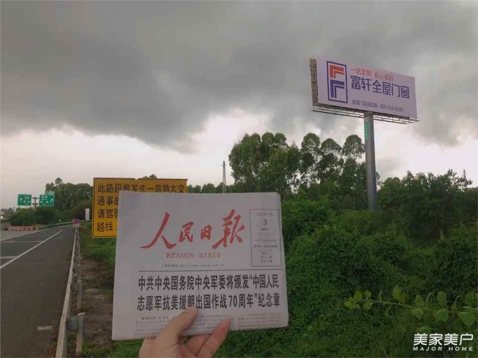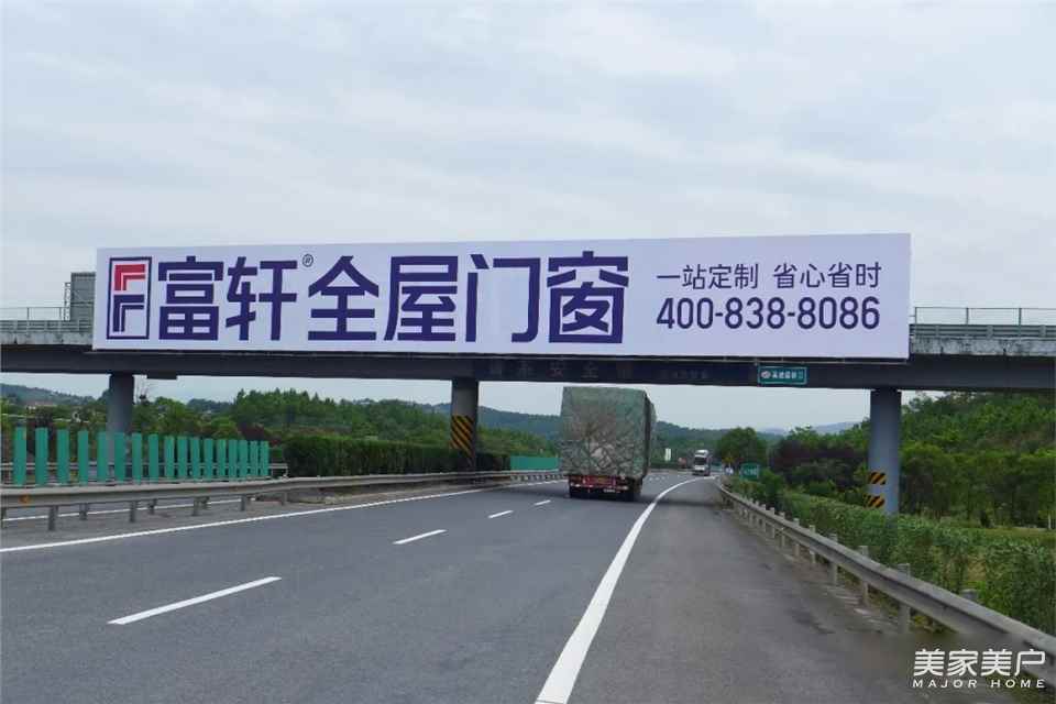 富轩门窗为了让更多消费者了解品牌的新形象,抢占了广东、福建、广西、贵州、湖北、湖南、江西、四川等地区的高速路高炮,其他地区也在陆续上画。在高速路上驰骋,富轩门窗便一路相伴,让更多人感受富轩的品牌魅力。