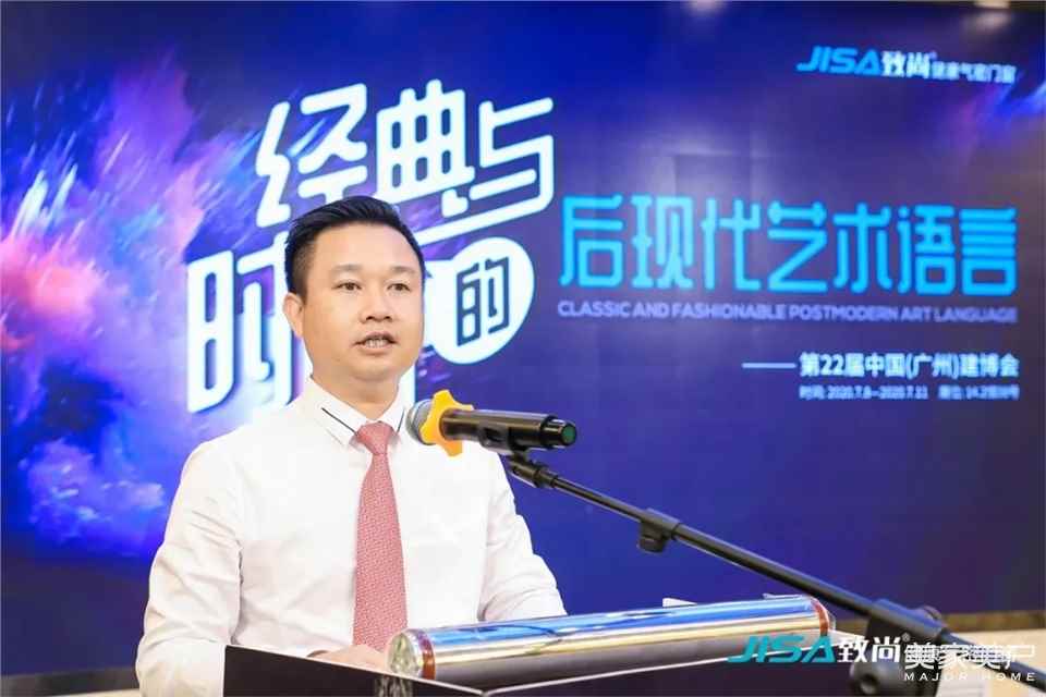 致尚门窗副董事长李钧海先生在晚宴上致辞,2020 年,一个充满挑战和机遇之年。后疫情时期,全行业都面临低迷的市场大环境。致尚的营销策略应势而变,全面探索与研究营销新路径,通过“线上直播”,为经销商引流与输送了大量的客户与订单;同时,在5 月,与高铁媒体再度携手,启动全国立体式广告投放模式;6 月,致尚 618京东旗舰店携新品隆重上线,正式开启线上线下全国联动促销。这一系列的营销策略,使得致尚的业绩在逆势中稳步增长。展望未来,致尚将一如既往地以产品为核心,以品质为生命,继续加大研发力度,完善门窗生产的标准化体系;并以营销为驱动,继续加大品牌推广与经销商帮扶,打造最强的致尚终端盈利系统。