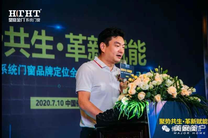 广东省门业协会铝门窗专委会会长、全国工商联家具装饰业商会门窗专委会执行会长李钧洪发表致辞。在致辞中,李钧洪首先对皇庭金门此次的品牌定位全新升级暨全球新品云发布会成功召开表示热烈的祝贺,李钧洪提到,今年建博会有百分之60是门窗企业展商,门窗行业是家居行业的最后一块蛋糕,发展前景非常大,并且今年疫情后佛山的门窗企业涌现出了一批优秀的企业,而皇庭金门就是其中之一,也希望皇庭金门能够越做越好,继续为广大消费者带来更多的好产品。