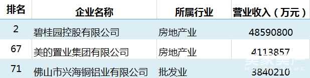 还有碧桂园控股有限公司、美的置业集团有限公司和佛山市兴海铜铝业有限公司等3家佛山企业,上榜2020中国民营企业服务业100强榜单,碧桂园控股有限公司排名该榜单的第2位。