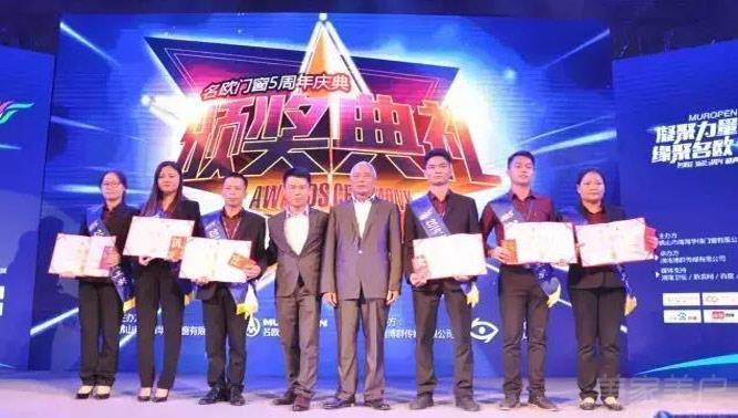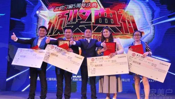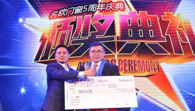 名欧门窗五周年庆典活动现场,还颁发了年度销售冠、亚、季军,优秀项目经理,优秀员工,优秀供应商,年度优秀经销商,销售明星奖,年度优秀设计师,年度特殊贡献奖共计十个奖项。