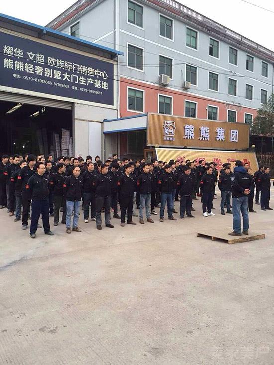 2015年初,转型升级的同时,一个新的集团公司——熊熊集团诞生。熊熊集团打破了传统民营企业单打独斗闯天下的现状,对浙江三家实力雄厚的生产制造企业进行了全新的资源整合。集团三家全资生产制造公司分别是浙江文超工贸有限公司、浙江耀华门业、浙江欧族工贸有限公司,企业员工达1500多人。熊熊集团成了一家专注于门业设计、生产、销售和服务为一体的生产制造型集团企业。