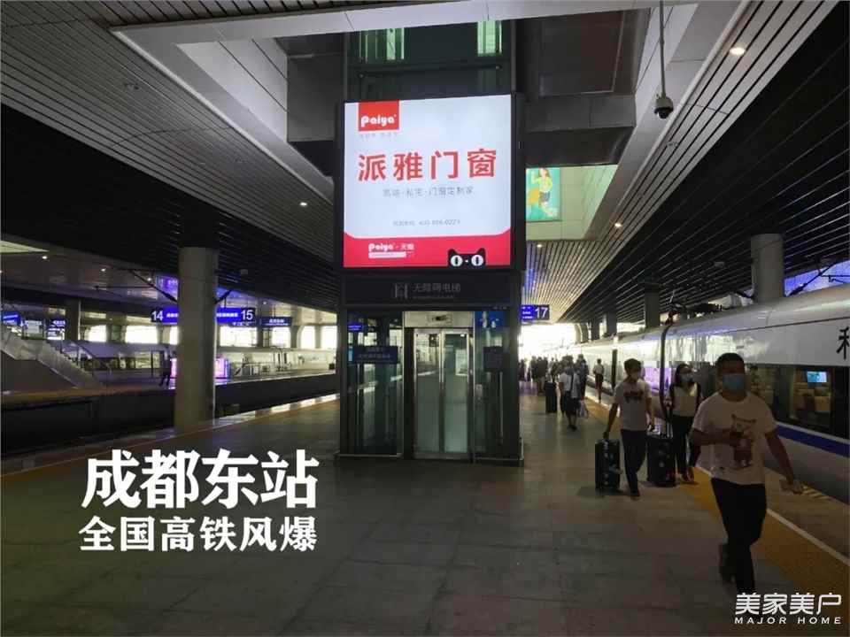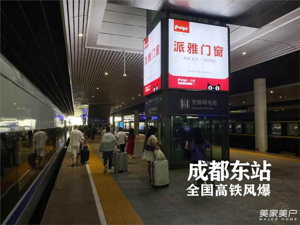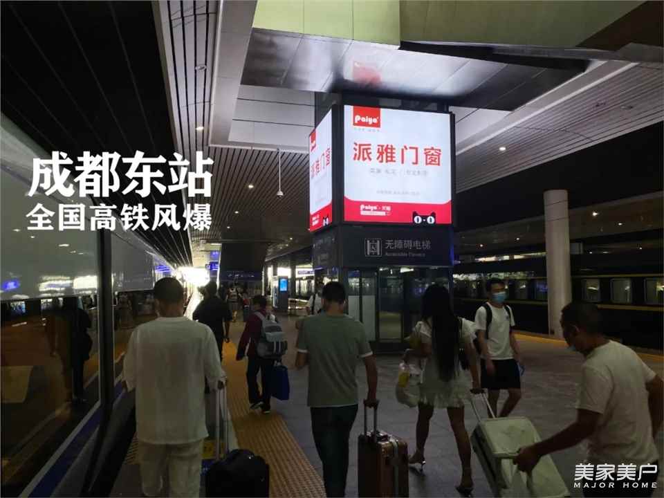 派雅门窗藉30周年庆之际,紧握传播契机,再度强势开启高铁“霸屏”模式,派雅重磅“霸屏”重庆北站、成都东站高铁广告高强度持续曝光,全面精准传达派雅品牌价值,抢占传播高地,以迅雷不及掩耳之势进入亿万人群的眼帘,将派雅品质生活理念传达至每一个消费者,让更多的国内外乘客共同感受派雅的品牌魅力。