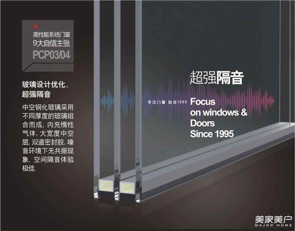 三玻两腔超强隔音性能,三层中空,隔音效果提升一倍。5MM厚钢化玻璃,12MM厚中空层,内充惰性气体,配合双道密封胶,无共振现象,提高隔音性。