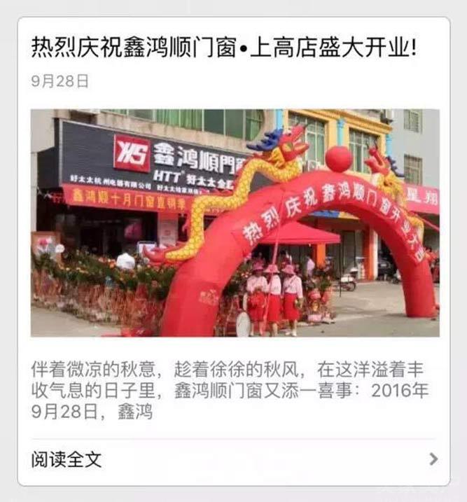 后来刘总在走访门窗合作品牌的时候选择了鑫鸿顺门窗,经过一段时期的洽谈、设计、投建等动作,鑫鸿顺门窗·汉阳店终于在2016年9月30日正式开业!