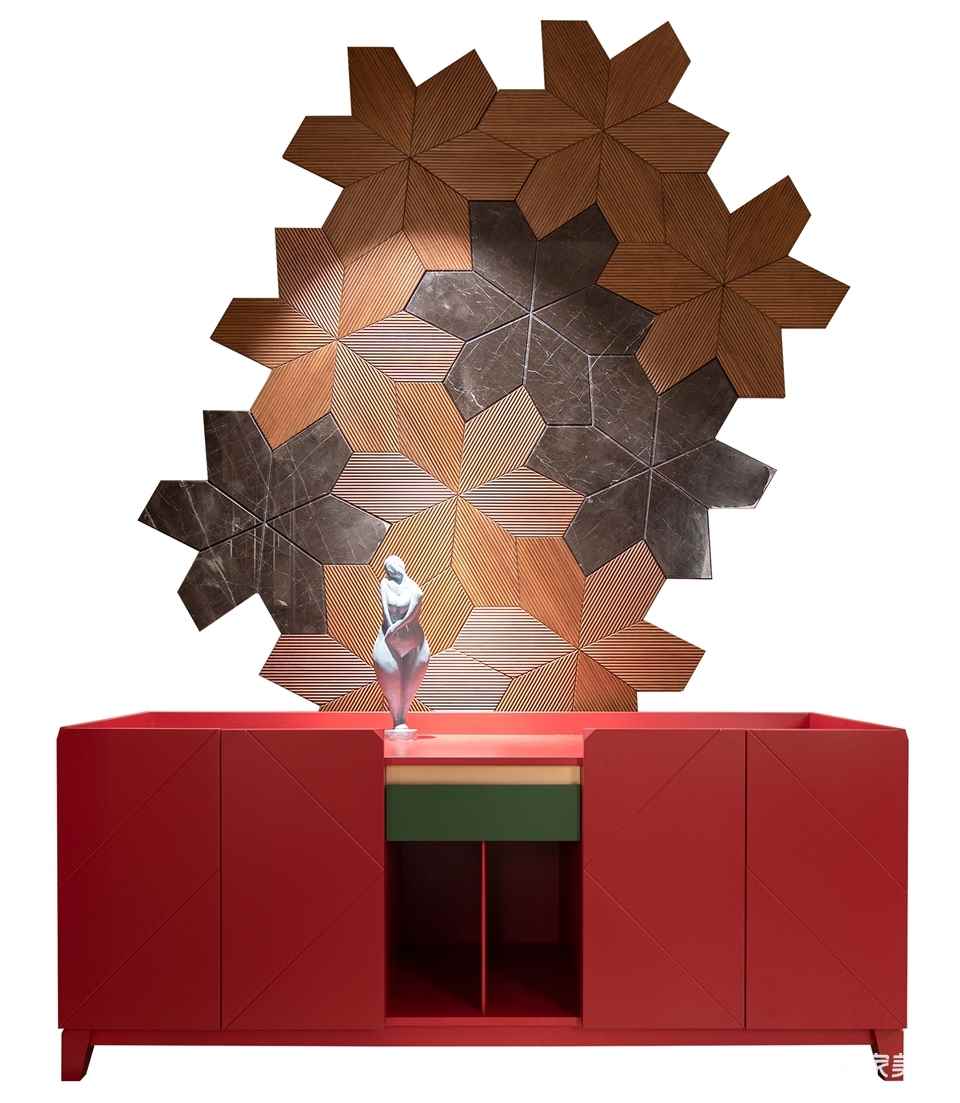 东威利发挥了本身做原木的专长,赋予木板几何图形拉槽,外观更立体。板木结合“i尚生活”系列新品使用科技皮、天然皮、金木皮、染色皮等材料,同时加入一些压线和小雕花,细节之处更显精致;在抽屉的设计上,东威利加入木板燕尾榫,使其拥有了原木的感觉。“i尚生活”系列新品的空间搭配更合理,给人一种时尚美观的视觉感。东威利总经理叶广柱介绍,“城堡生活系列原木定制的定性为实木整装,‘i尚生活系列’板木结合的定性为时尚整装。目前在原木整装领域,板木结合的‘1+1>2模式’并不多见。东威利本身做原木产品,增加板式产品相对容易,正如东威利之前由木门顺利转型整装。”