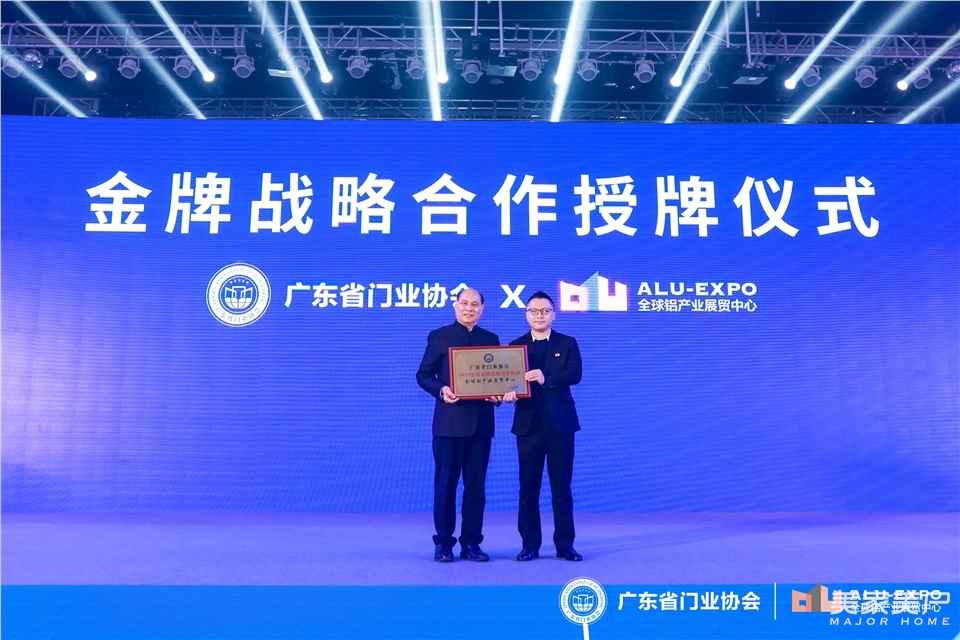广东省门业协会会长关润开为佛山市三水区铝加工行业协会颁发战略合作伙伴牌匾