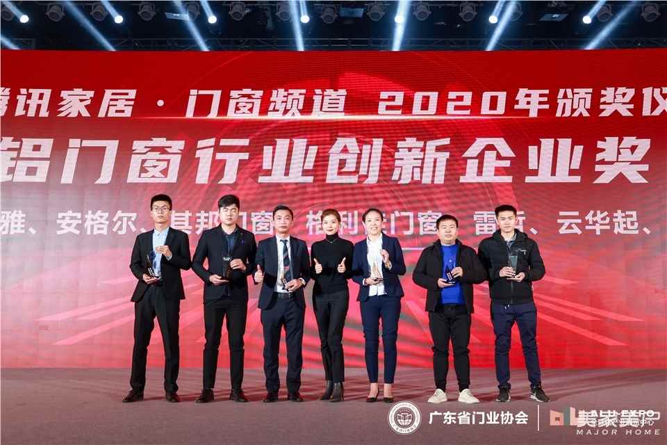 腾讯家居·门窗频道2020年颁奖仪式在本次晚宴上举行。腾讯家居·门窗频道执行总裁鲍丹为获得“金门窗奖”派雅门窗,“铝门窗行业创新企业奖”博仕门窗、派雅、安格尔、其邦门窗、格利佳门窗、艾瑞迪、雷哲、云华起、奥迪斯门窗分别颁发了荣誉证书,以表彰他们在创新发展中展露出的强劲品牌生命力。