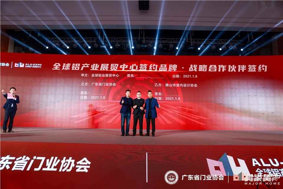 在嘉宾祝酒仪式后,全球铝产业展贸中心与广东省门业协会、佛山市室内设计协会,以及70家门窗企业签订战略合作协议,达成战略合作伙伴关系。