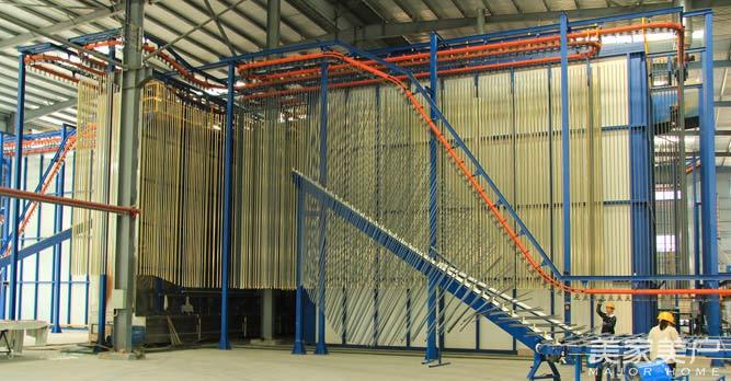 作为龙头企业之一,新河铝材的表面处理技术一直走在行业前列。今年五月率先在国内提出了电氟泳表面处理技术,并开设了全新进口立式氧化电泳生产线,生产线布局采用了U型布置,不仅可以做到工艺路径最短,实现排杆运行路径最短,还提高了入料和出料的效率。这相比起原始的电泳技术,电氟泳所生产出来的铝型材表面质量一流,同时产品也更环保,视觉效益更高。曹总告诉我们:“通过新河独有的电氟泳表面处理技术,加之新河严格的质量管控体系,让新河的产品深得人心。”