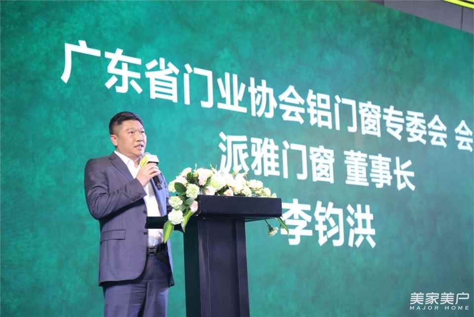 接下来,广东省门业协会/铝门窗专委会会长、派雅门窗董事长李钧洪先生上台发言!正如李会长所述,高登作为大家居企业的主力供应商,同时作为派雅的多年供应商,不断创新突破,以实际行动/推动绿色健康的家装创新产品发展,派雅也郑重承诺加入到高登以铝代木的行动中来,一起倡导使用绿色环保健康的原材料!