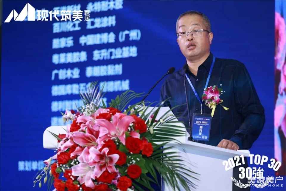 中国木材与木制品流通协会木门窗专业委员会常务副会长张鹏带来“中国木门行业现状及发展趋势”主体报告,对2020年行业现状进行解读。他指出,中国木门行业正在形成“两级一面”的局面,实体专卖店的拐点也已经到来。行业产能过剩、技术壁垒不高、消费者购买产品的侧重点将放在体验及服务上,行业竞争将由以木门产品为核心转变为以用户体验为核心。权威的数据分析给在场的各位企业家带来了信心。