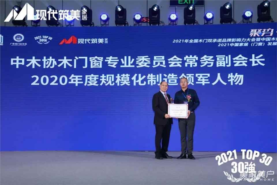 随后,张鹏副会长公布了协会常务副会长增补决定,新增肇庆市现代筑美家居有限公司家居制造中心总经理邢津生为中国木材与木制品流通协会木门窗专业委员会常务副会长。关润开会长向现代筑美公司及其代表授予“中国木门行业规模化制造领军企业”和“中国木门行业规模化制造领军人物”荣誉。