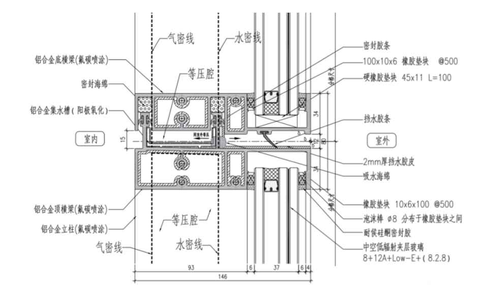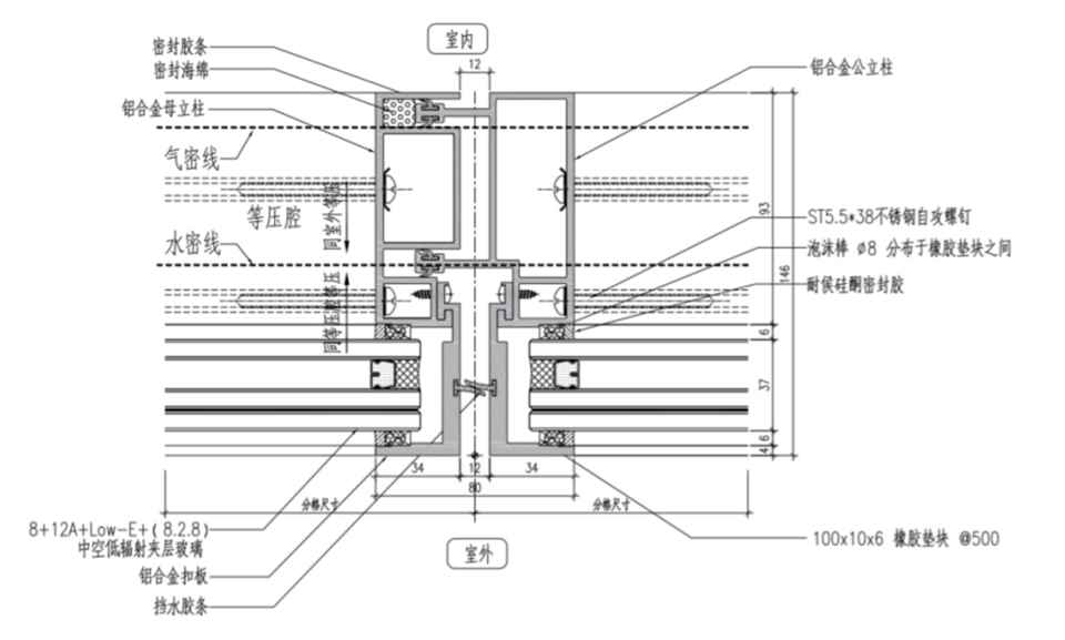 但是单元式玻璃幕墙构造复杂,对单元板块互相插接后所形成的腔体有严格的要求。不同于以往的构件式幕墙接缝打胶密封防漏处理,单元式幕墙均通过插接连接,插接位置使用胶条密封处理,所以它的水密性问题是一大焦点。