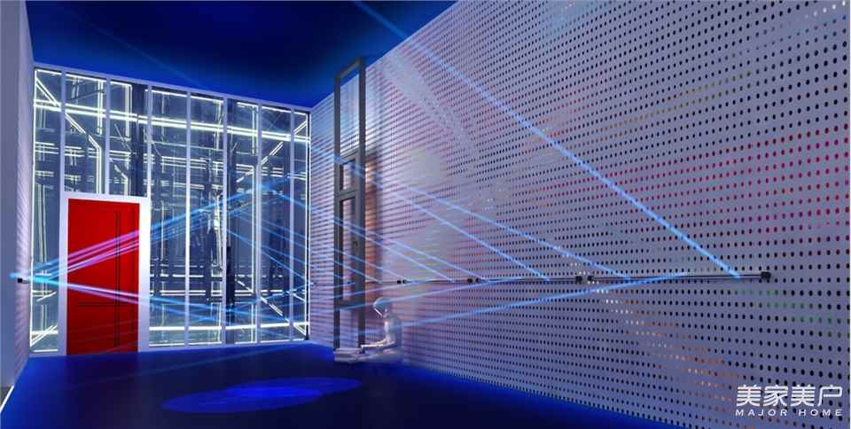 为突出“科技感”,圣堡罗展位设计风格主要以简约、时尚、高科技为主,通过材质、灯效、视觉三位一体的“科技”场景,把产品与主题空间的完美结合,营造科技、未来感。灯光与冲孔板的主要材质运用本身与空间氛围匹配适融性高,空间氛围的精致度与科技感也随之烘托;同时创新采用LED屏幕与产品的融合,延续互动的场景打造网红打卡点,届时吸引更多观众于此拍照、打卡。