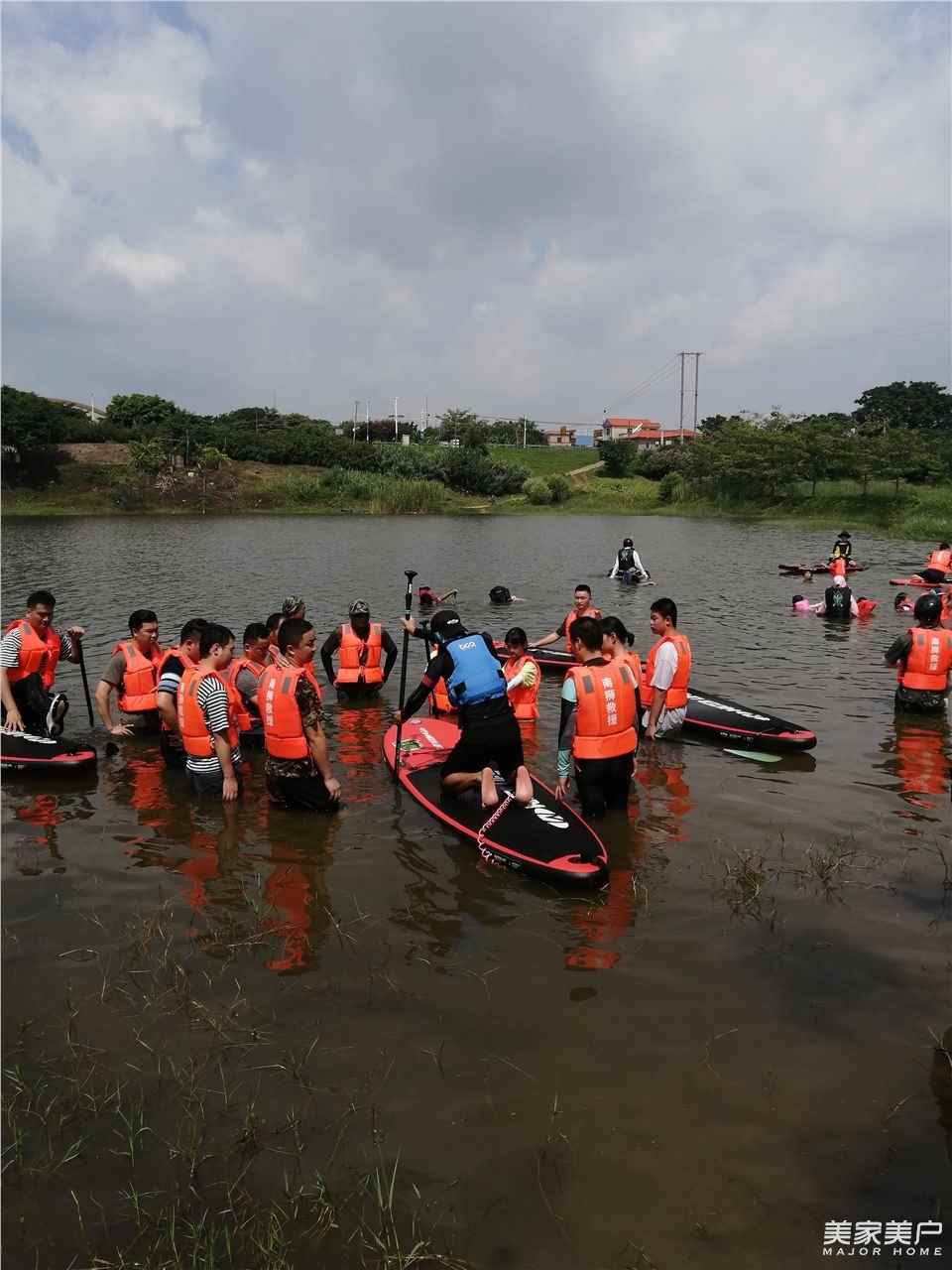 随后,广东省门业协会秘书处工作人员,以及粤莱美董事长余剑锋一行20多人现场观摩、体验了佛山市南狮退役军人志愿救援队在南海丹灶训练基地一上午的冲锋舟水上搜救、皮划艇水上训练活动。