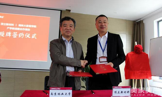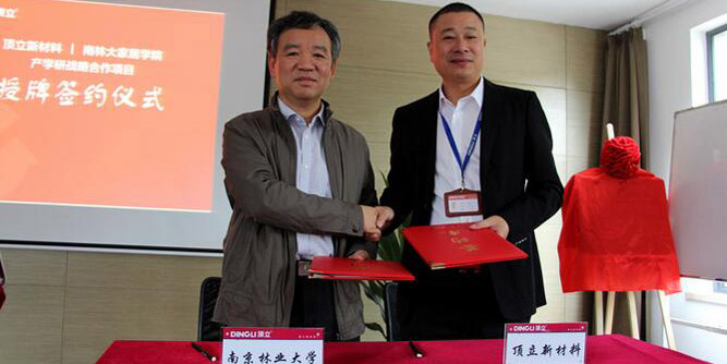 2016年10月12日上午,顶立新材料科技有限公司牵手南京林业大学家居与工业设计学院,合作共建“产学研实习基地”签约揭牌仪式圆满举行。