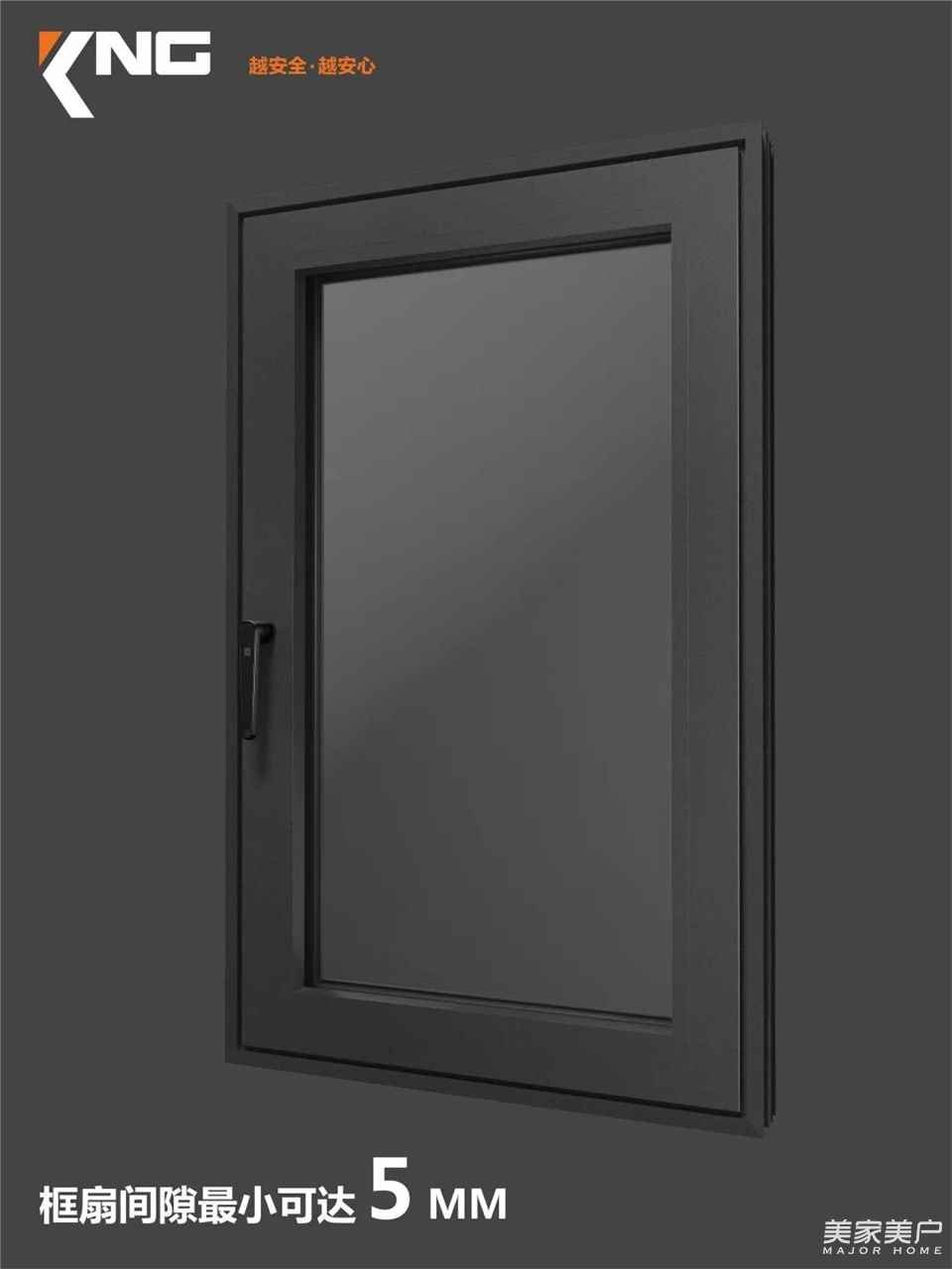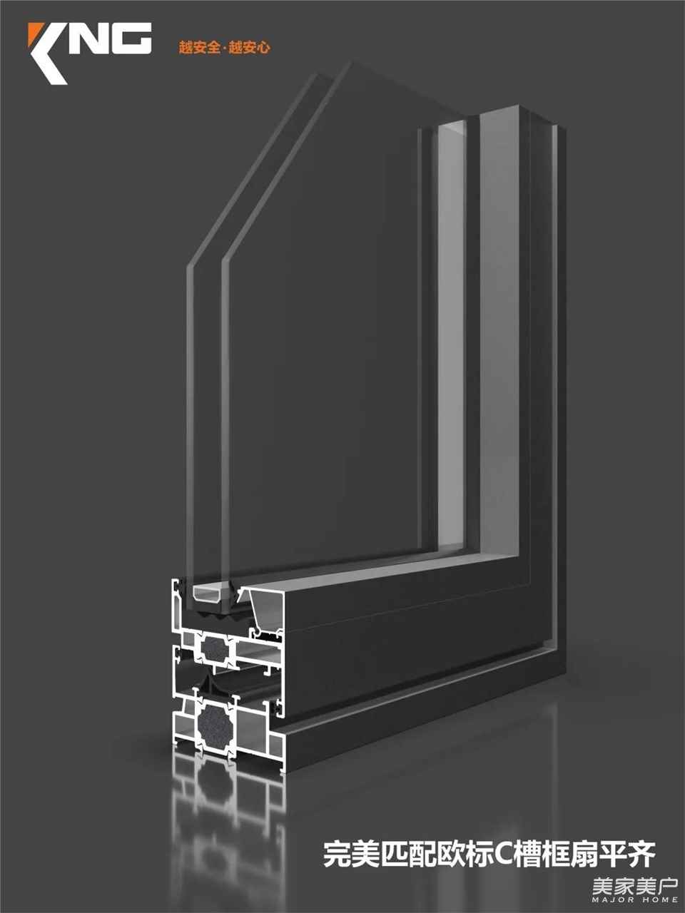 框扇平齐:窗框设计采用框扇平齐完美匹配欧标C槽,超高承重100KG,框扇间隙最小可达5mm。
