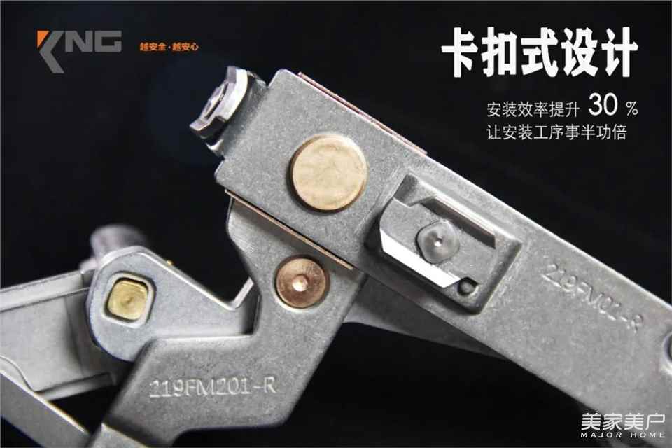 更安全:上下铰链全部快速卡接式设计,并配合侧位锁闭、剪切定位功能,整套五金系统具备防脱落、防侧滑功能,让您的产品无安全隐患,越安全越安心。