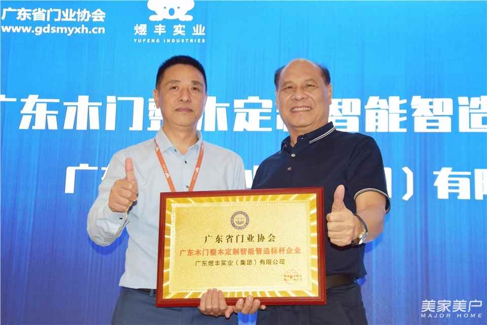 会上,关润开会长为广东煜丰实业(集团)有限公司颁发“广东木门整木定制智能智造标杆企业”奖项。