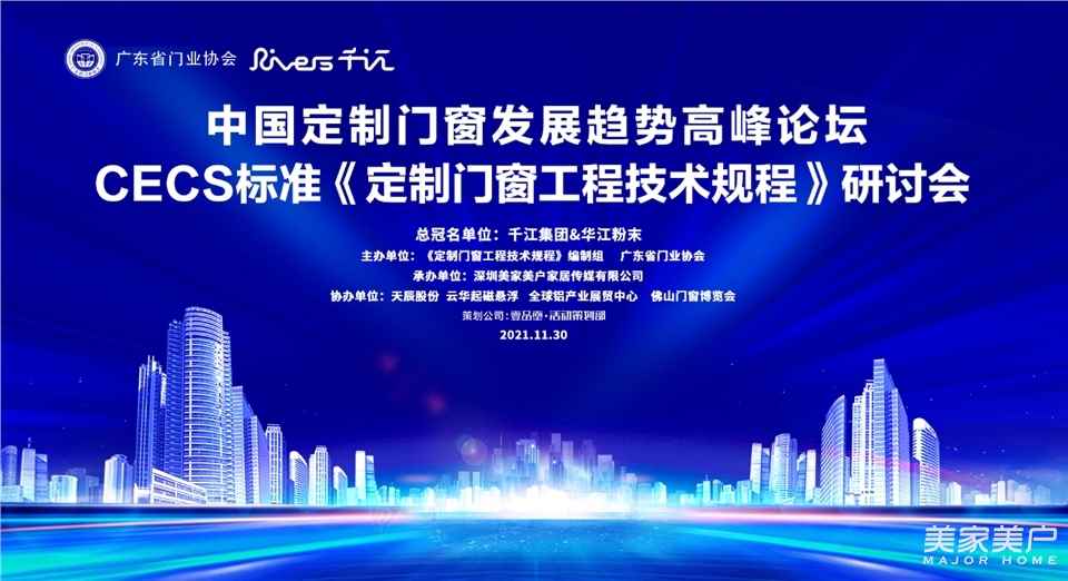 11月30日,由“千江集团与华江粉末”总冠名,CECS标准《定制门窗工程技术规程》编制组、广东省门业协会主办,伟德体育1946手机版承办的“中国定制门窗发展趋势高峰论坛暨CECS标准《定制门窗工程技术规程》研讨会”在佛山举办。