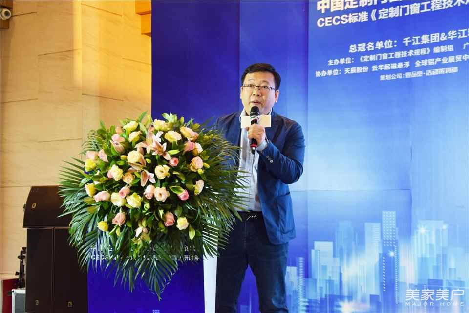 全国建筑幕墙门窗标准化技术委员会秘书长、研究员王洪涛在会上致辞。王洪涛认为,家装门窗一直没有一个统一的标准,这一问题引发了行业的广泛关注。门窗标准是对现有技术的提炼,它的完善需要门窗企业的积极参与和广泛地调研、讨论。希望CECS标准《定制门窗工程技术规程》的出台,能够引导、规范门窗行业的良性发展,让门窗企业在生产经营过程中能够有据可依。