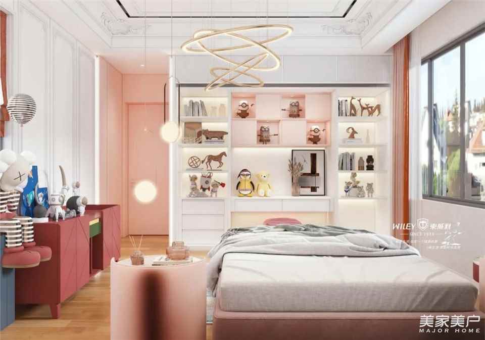 分色设计让空间视觉过渡更为自然流畅,加入空间主调粉红色,给儿童空间以活跃的气氛。