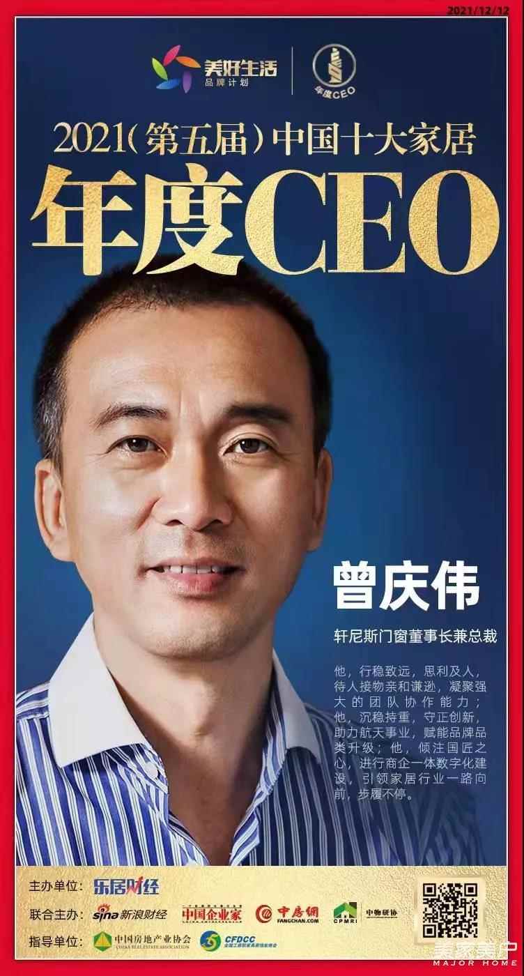 韧性 | 轩尼斯门窗总裁曾庆伟先生荣获“2021中国十大家居年度CEO”