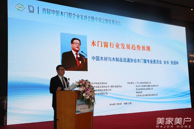 11月1日,由中国木材与木制品流通协会主办,中国木材与木制品流通协会木门窗专委会、北京金隅天坛家具股份有限公司、北京闼闼同创工贸有限公司承办,广东汇龙涂料有限公司、中山市小揽镇海诗蔓五金有限公司、顶立新材料科技有限公司、橡树家居、北京伟士佳合展览策划有限公司协办的“2016首届中国木门窗企业家峰会暨全屋定制发展论坛”在北京万达嘉华酒店隆重举行。