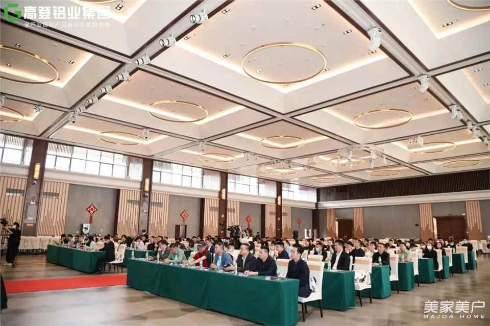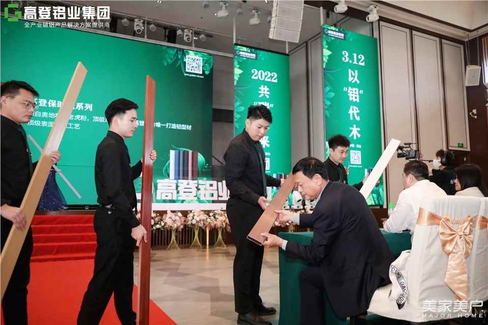 活动现场空前盛况,高登铝业集团总裁高振中先生,执行总裁李婧女士,来自全国各省、市的协会领导、行业专家,以及海内外客户荟萃一堂,见证3·12以“铝”代木,2022共“碳”未来。