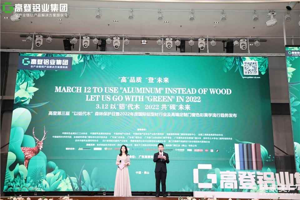2022年3月12日植树节,在这个全世界关注绿色发展、低碳未来的日子里,高登作为中国高端铝型材行业领军品牌代表,全产业链铝产品系统解决方案的提供商如期举办——高登·第三届“以铝代木”森林保护日暨2022年度国际铝型材行业及高端定制门窗色彩美学流行趋势发布会”。