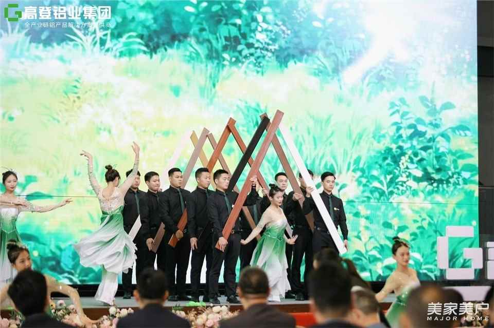 至此,2022中国铝型材行业·高登“3·12森林保护日”第三届发布会在十秒倒计时仪式后正式启动!绿意盎然的灵动空间,在一场极具特色的《铝木共生》舞蹈中逐渐升华。看着一个个森林使者穿越在“森林”中,尽情用舞姿展示绿色与科技融合的高登铝材,慢慢消融生活与自然的边界。