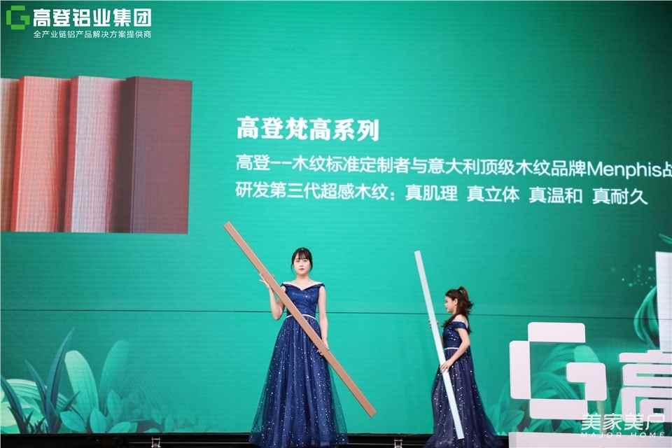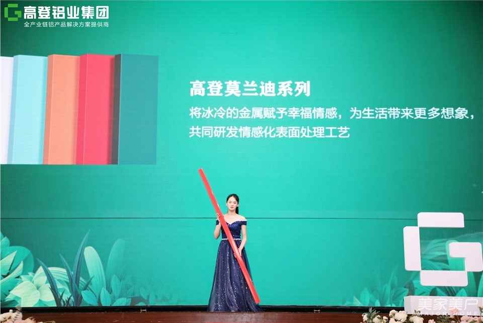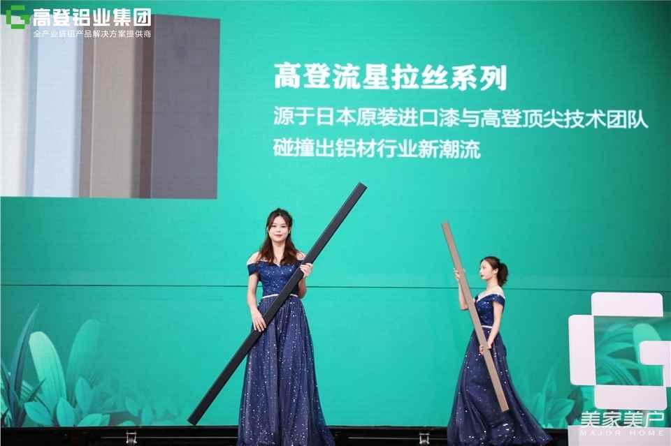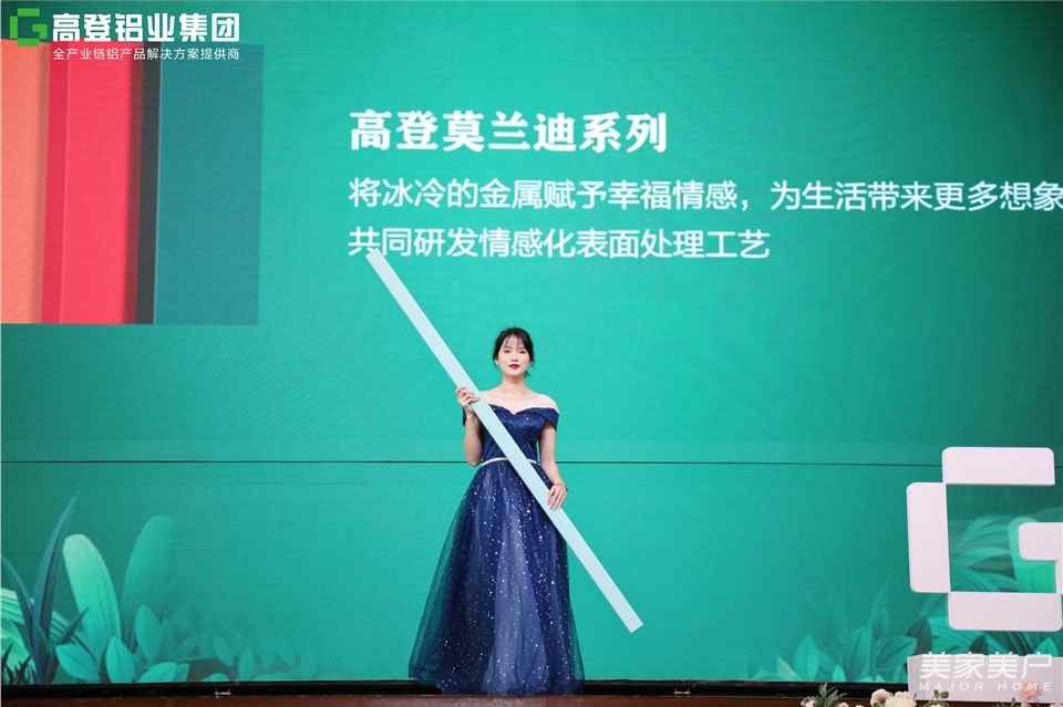 接着一场时尚Show揭开了今天最大的惊喜——高登2022新品发布!随着模特带着高登新品——流星拉丝系列、保时捷系列、梵高系列、轻奢系列、莫兰迪系列一一走来,更加诠释着高登用性能与颜值兼备,绿色环保与舒适健康来重新定义铝材。
