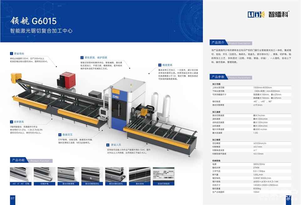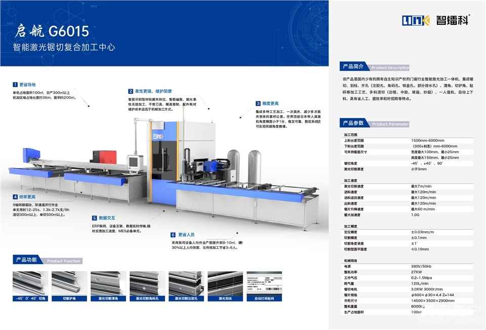 产品功能:-45°、0°、45°切角;切割护角;激光切割清角;激光切割角码孔;激光切割注胶孔;激光划线;激光打码贴码。