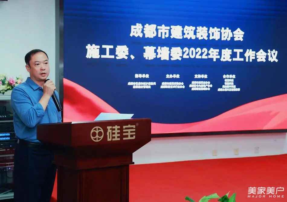 协会常务副秘书长谢题檐作协会2022年度施工委、幕墙委重点工作介绍,他提到,施工委、幕墙委将以党建引领,围绕政府职能转移、标准编制、产业链圈层建设、行业数据统计、信用评价、产业工人建设、技能人才大赛、人才引进、公装设计师队伍建设、版权登记、成渝双城设计大展、成都建筑装饰工程奖、蓉城设计师平台、施工信息服务平台等方面开展工作。