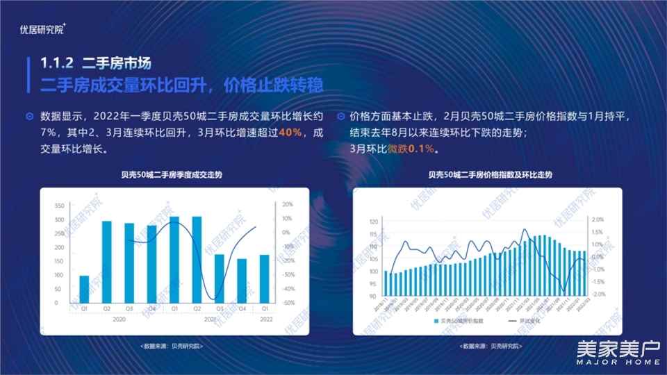 数据显示,2022年一季度贝壳50城二手房成交量环比增长约7%,其中2、3月连续环比回升,3月环比增速超过40%,成交量环比增长。价格方面基本止跌,2月贝壳50城二手房价格指数与1月持平,结束去年8月以来连续环比下跌的走势;3月环比微跌0.1%。