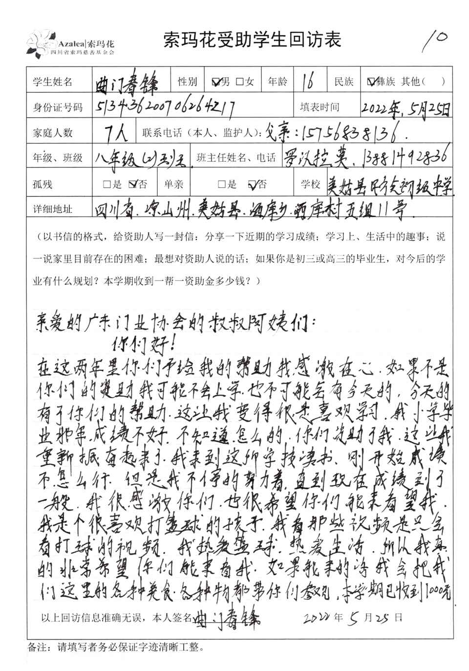在年均收入2000元左右的大凉山,许多学校只能眼睁睁地看着一个个孩子因为家庭困难而休学甚至辍学。爱心成就梦想,帮扶点燃希望。为帮助家庭困难学生,让困难家庭感受到来自社会的关心和温暖,情况核实后,经过考察人员上报协会秘书处,协会通过会议后决定从贫困家庭中资助3名贫困学生完成初中三年学业。协会作为一个社会团体,尽力帮助大凉山部分特困家庭解决学生上学难的问题,让孩子们在求学路上少一丝忧愁,多一份温暖。