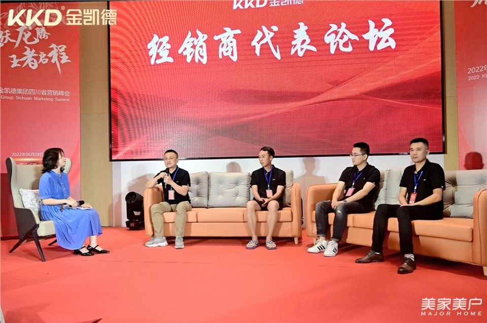 经销商代表论坛上,来自阆中、兴文、威远、冕宁等地的经销商代表汇聚一堂,共同分享与金凯德的故事。论坛由房天下家居营销总监周叶主持,大家就“如何与金凯德结缘”、“经营金凯德的心得”、“对本次峰会的期待”、“如何看待和规划当地市场”等问题进行了热烈讨论。讨论中,大家一致认为,金凯德是一家具有爱心、责任心的企业,从总公司到分公司的各级领导都是谦逊、热情的实干家。未来,会秉承“实干敢干、勇于创新、稳扎稳打、努力进取”的理念,继续在各自的市场打拼,为金凯德的各项战略实施贡献自己的力量。