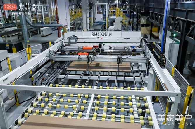 “在家居行业,得封边者得天下。封边技术是决定定制产品细节美观程度、影响产品质量的关键。”索菲亚集团副总裁陈炜介绍道,索菲亚未来工厂重金引进德国进口的豪迈610柔性封边机,通过国际最先进的磁悬浮倒角技术进行封边,从细节处确保产品质量。