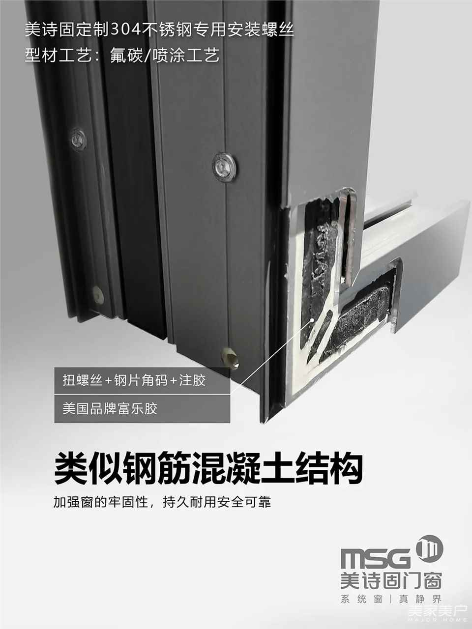 美星系列平开窗,是一款极亲民又极具品质的平开窗系列产品,可根据用户需求,定制不同型材壁厚。类似于钢筋混凝土结构的扭螺丝+钢片角码+注胶工艺,可应对各种极端天气。是目前市面上广受好评的平开窗产品之一。